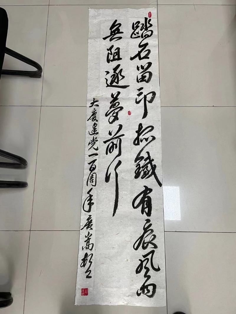 濮陽城發(fā)投集團(tuán)認(rèn)真?zhèn)鬟_(dá)學(xué)習(xí)文件精神,組織并鼓勵(lì)員工積極參與。集團(tuán)公司員工踴躍報(bào)名,報(bào)送相關(guān)書法、攝影作品,經(jīng)過內(nèi)部評(píng)選,推選出集團(tuán)公司黨委委員、副總經(jīng)理?xiàng)顝V嵩的書法作品《踏石留印 抓鐵有痕》代表集團(tuán)公司參加活動(dòng)。