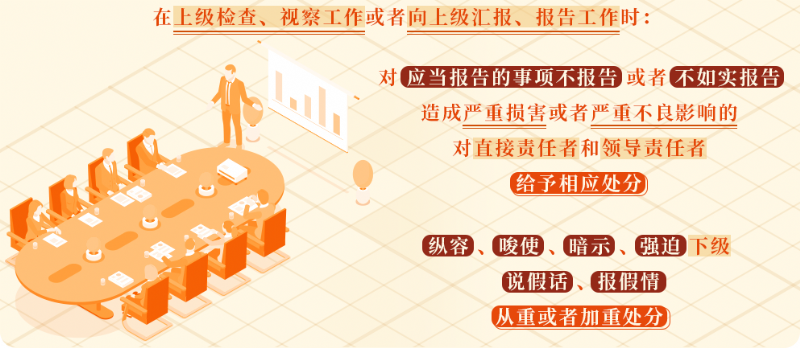 《關(guān)于新形勢下黨內(nèi)政治生活的若干準(zhǔn)則》規(guī)定,黨的各級組織和全體黨員必須如實(shí)向黨反映和報(bào)告情況,反對弄虛作假、虛報(bào)浮夸,反對隱瞞實(shí)情、報(bào)喜不報(bào)憂。領(lǐng)導(dǎo)機(jī)關(guān)和領(lǐng)導(dǎo)干部不準(zhǔn)以任何理由和名義縱容、唆使、暗示或強(qiáng)迫下級說假話。實(shí)踐中,有的黨組織和黨員干部為了謀取上級的肯定和贊許,上報(bào)假情況、假數(shù)字、假典型;有的為了掩飾發(fā)生的問題、粉飾太平,隱瞞真實(shí)情況;有的為了應(yīng)付檢查,無中生有、移花接木。這些行為誤導(dǎo)上級對實(shí)際情況的掌握,干擾上級作決策,給黨和人民事業(yè)造成損失,必須嚴(yán)肅追究相關(guān)人員責(zé)任。如果明知情況不實(shí)或有問題,不但不制止、不糾正、不如實(shí)報(bào)告,還要求下級說假話、報(bào)假情以掩蓋問題、隱瞞實(shí)情,則要給予更重處分。